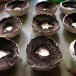 12 große champignons (trocken säubern mit einem Pinsel, Haut abziehen oder mit einem Tuch; Strunk entfernen)