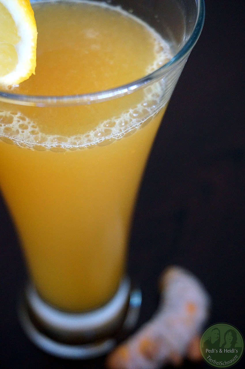 … die “golden milk“ ist ja im Moment als Wunderheilmittel in aller Munde… Da ich es aber nicht so mit Milchmixgetraenken habe, hab ichs kurzentschlossen in eine leckere Limonade a la Ginger Ale umgewandelt.