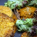 Vor einigen Wochen testeten wir mit einigen Freundinnen und Freunden den Hofwirt in Kaisheim bei Donauwörth/ Landkreis Donau Ries, da dieser Werbung machte mit veganen Gerichten auf der Karte. Die knusprigen Auberginen schmeckten uns Allen so gut, dass ich beschlossen habe dieses Rezept für uns nachzukochen, da die Köchin das Grundprinzip dazu verraten hatte. Auf Maischips als Panade wäre ich im Leben nicht gekommen….