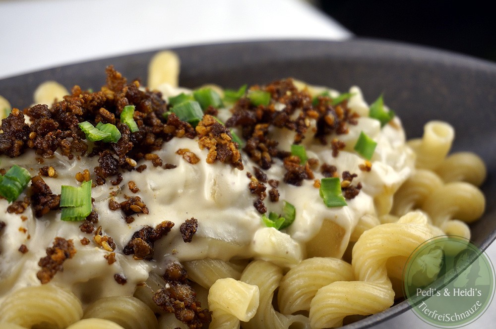 Wer es lieber pur, ohne vegane Cuisine mag, nimmt einfach 400 g Wasser – den Rest wie im Rezept beschrieben, oder ihr könnt natürlich auch fertige Sojacuisine, Mandelcuisine oder Hafercuisine verwenden. Vom Grundrezept bleibt sichs gleich…. In Klammern hab ich bei den Zutaten geschrieben wo Ihr auch Alternativen verwenden könnt – so wie es Euch eben lieber ist..