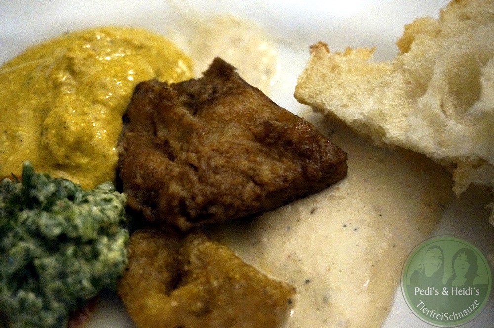 Neben den unterschiedlichen veganen Fleischvarianten – wir haben dieses Mal drei verschiedene Sorten verwendet – zum Einen kleine Kicherschnitzelchen, nach dem Rezept der bewährten Kicherschnitzel (klick auf den Link, dann bist Du sofort beim Rezept).