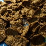 Entweder Du machst die Hälfte des Rezepts, wenn Du noch andere vegane Fleischvarianten verwenden magst; oder Du machst an einem Tag die Kicherschnitzel und stellst den Teig kühl und bereitest am anderen Tag von diesem Teig kleine – aufspießbare Kicherschnitzelchen vor, die dann in dem Fett herrlich frittiert werden.